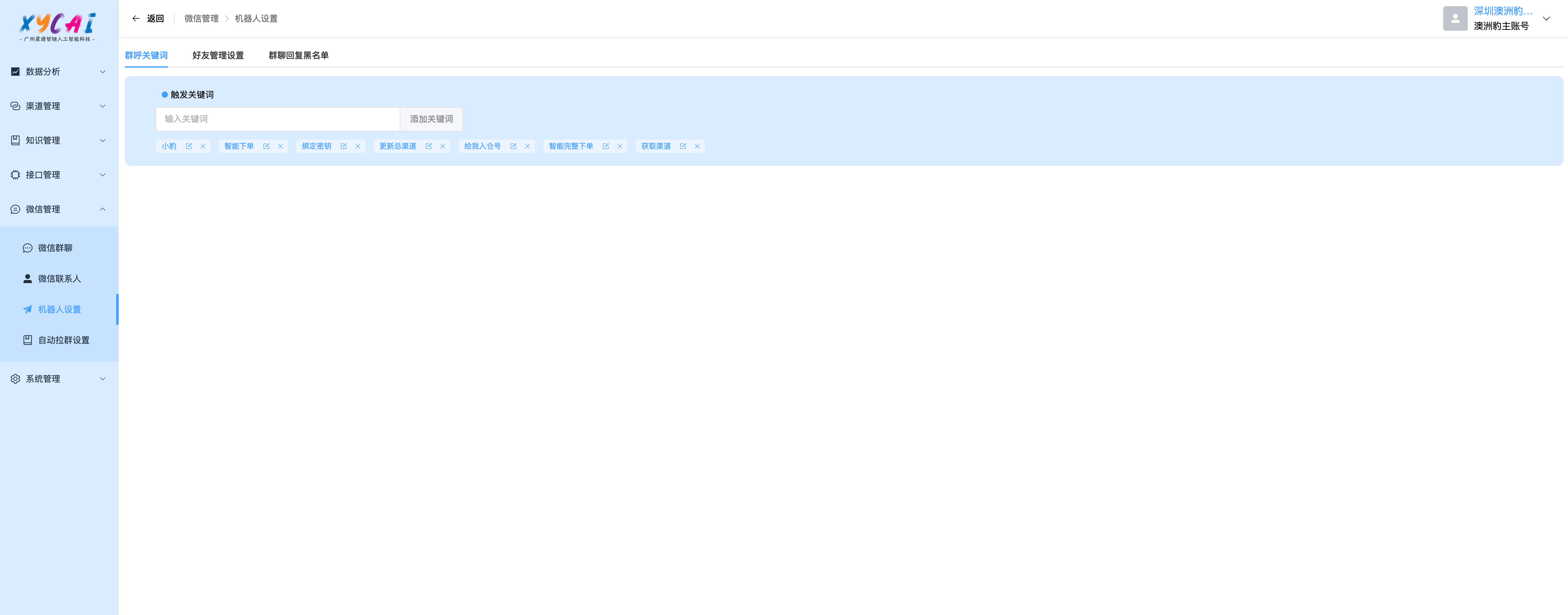 除了前面第一个“小豹” 是机器人昵称可以自主编辑,后面的关键词是关于下单流程的,如果需要修改请先联系工作人员